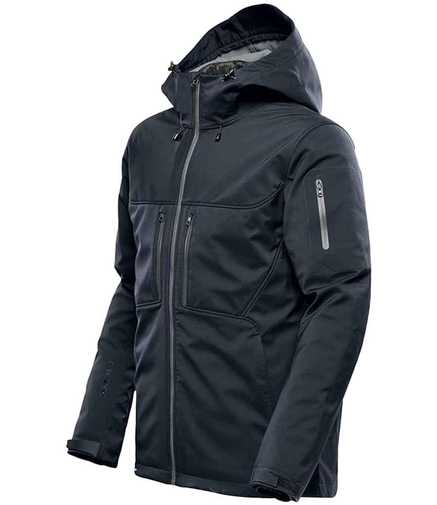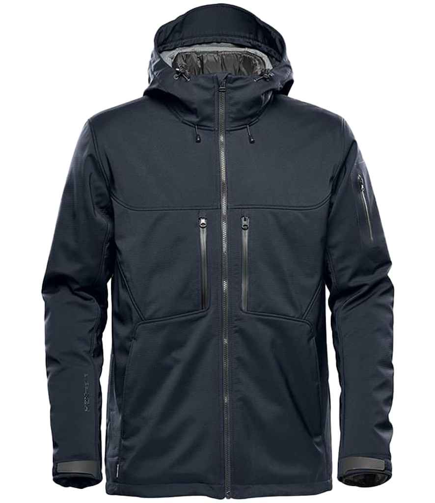 - Black and navy 95% nylon/5% spandex ripstop, charcoal twill 100% polyester twill outer bonded with polyester grid micro fleece.
